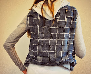 Vamos trenzando nuestras tiras, usando de plantilla el espacio dejado por la espalda que hemos retirado (o la propia pieza de la espalda si no la hemos convertido en tiras)